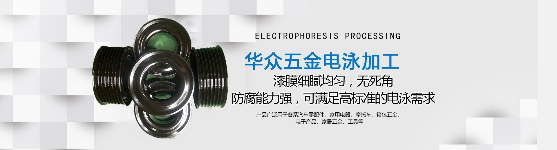 About us龍巖市華眾機械有限公司成立于2010年12月,新廠位于福建省龍巖市新羅區東寶工業集中區,注冊資本3000萬元,占地27000平方米,員工60多人,是一家專業從事電泳、磷化、數車等加工業務的制造型企業,是國家高新技術企業,擁有三十多項實用新型專利。 我司的電泳技術和品質在華南地區深受客戶信賴。公司擁有20年以上經驗豐富的技術人員和管理人員,擁有全自動電泳生產設備,所采用原料均為美國、德國進口,產品品質能達到國際電泳涂裝標準要求,廣泛應用于汽車零部件、機械配件、電子產品、工藝品等一系列金屬制品。現配套服務于比亞迪、吉利、通用、福特、大眾、豐田、現代等全球知名汽車公司。 2018年8月公司通過NSF-ISR管理評審,獲得IATF16949質量管理體系證書。
